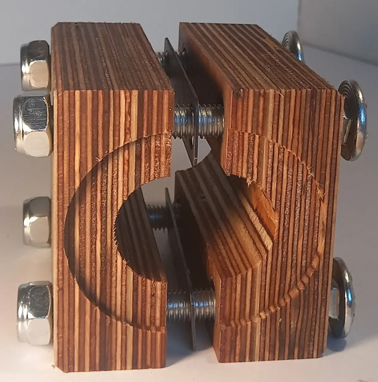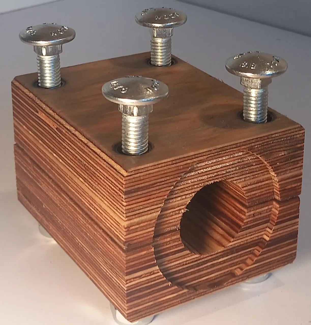 Łożysko wykonane jest ze sklejki. W zestawie znajdują się 4 śruby z nakrętkami oraz 2 metalowe płytki.