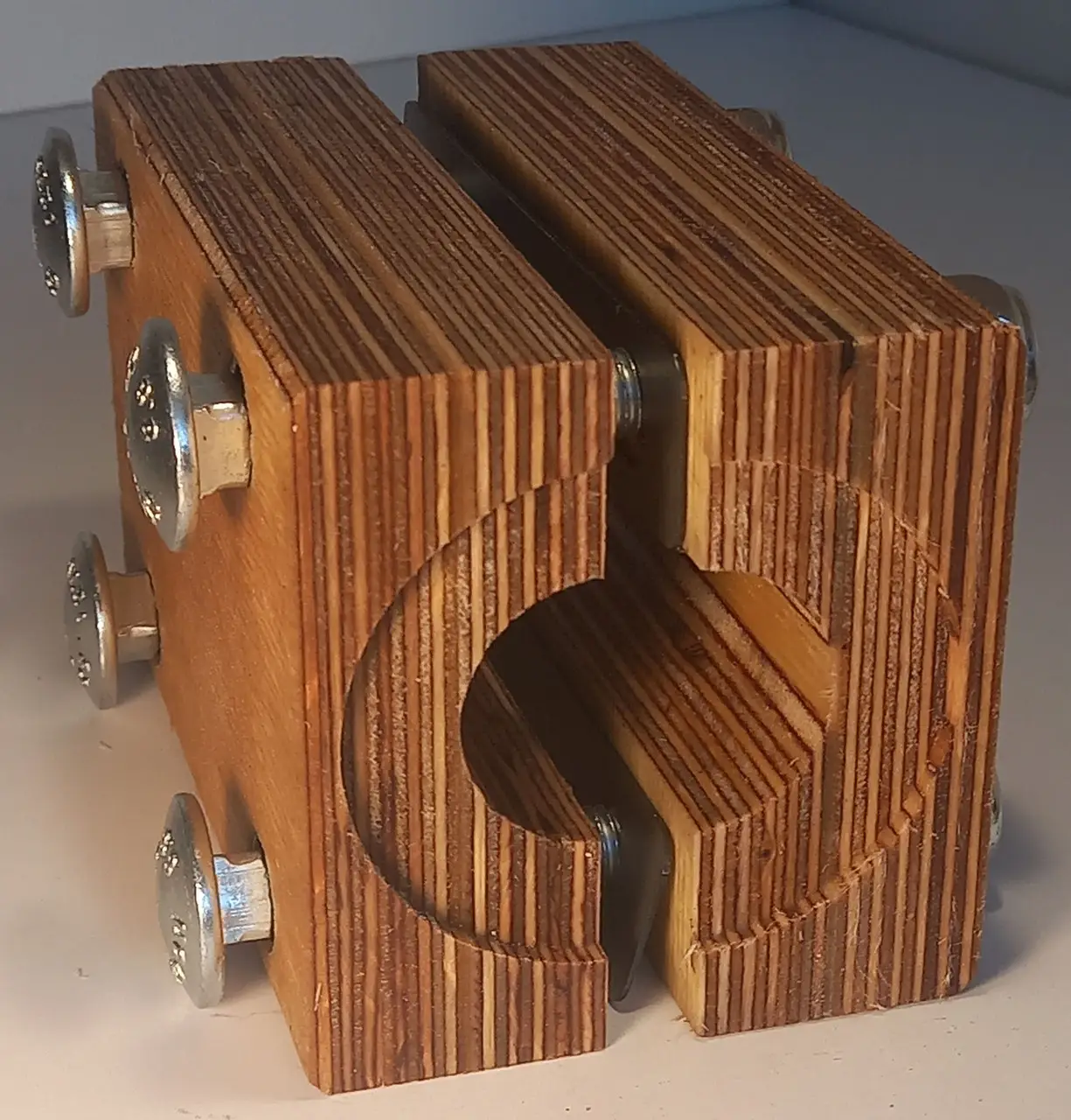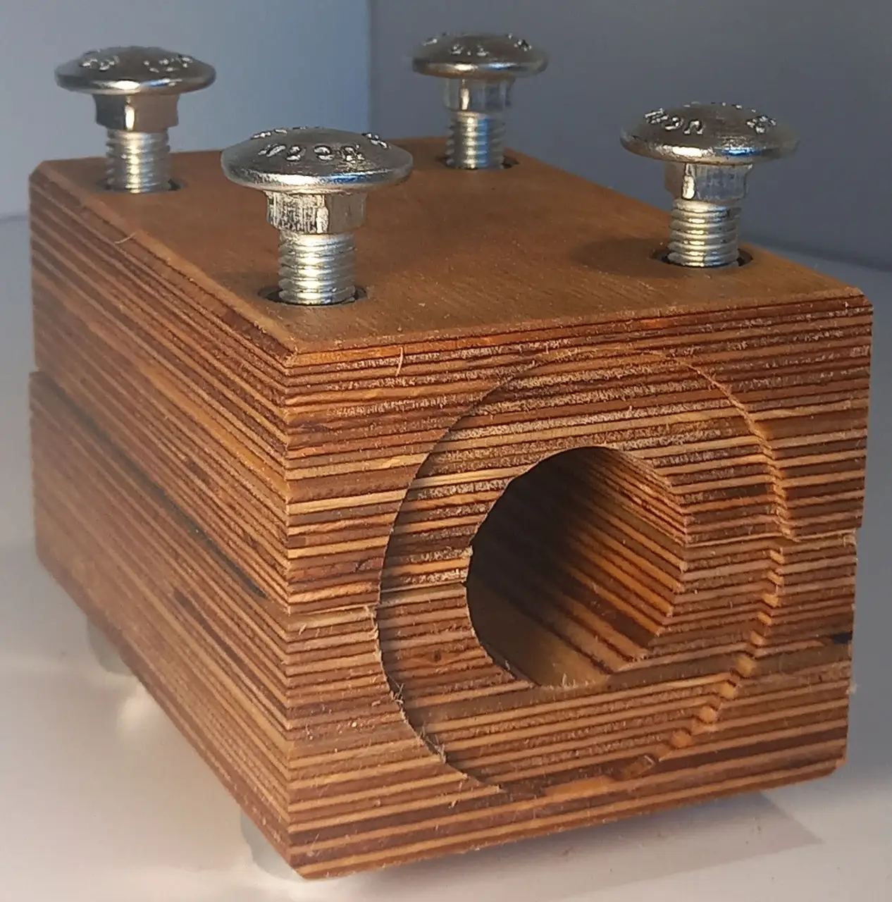 Łożysko wykonane jest ze sklejki. W zestawie znajdują się 4 śruby z nakrętkami oraz 2 metalowe płytki.